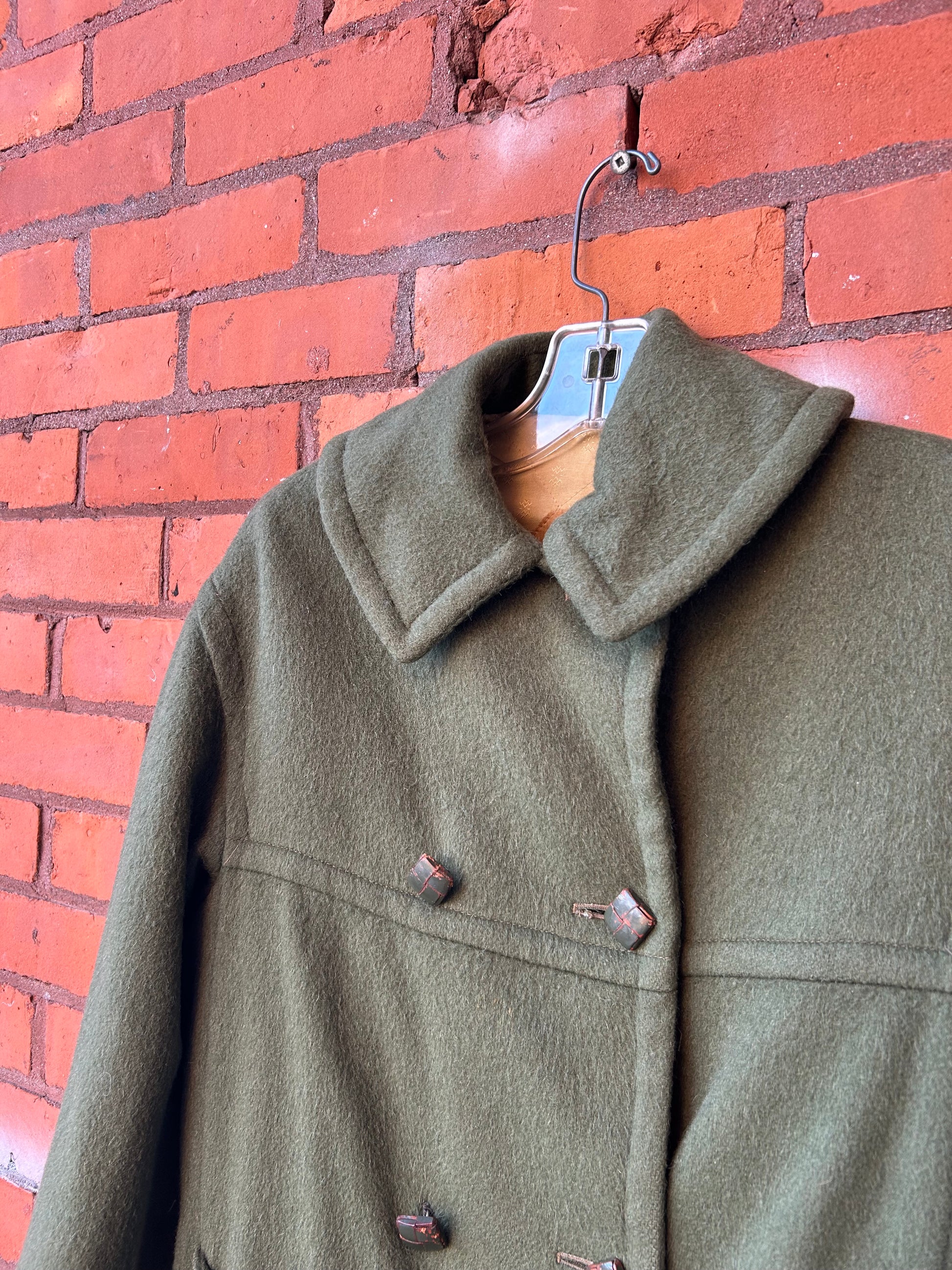 60’s Vintage Green Wool Pea Coat / Size M