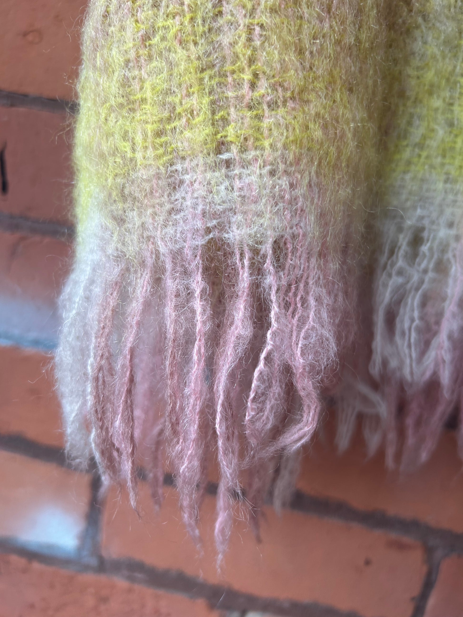 70’s Vintage Yellow & Pink Woven Mohair Blanket Scarf