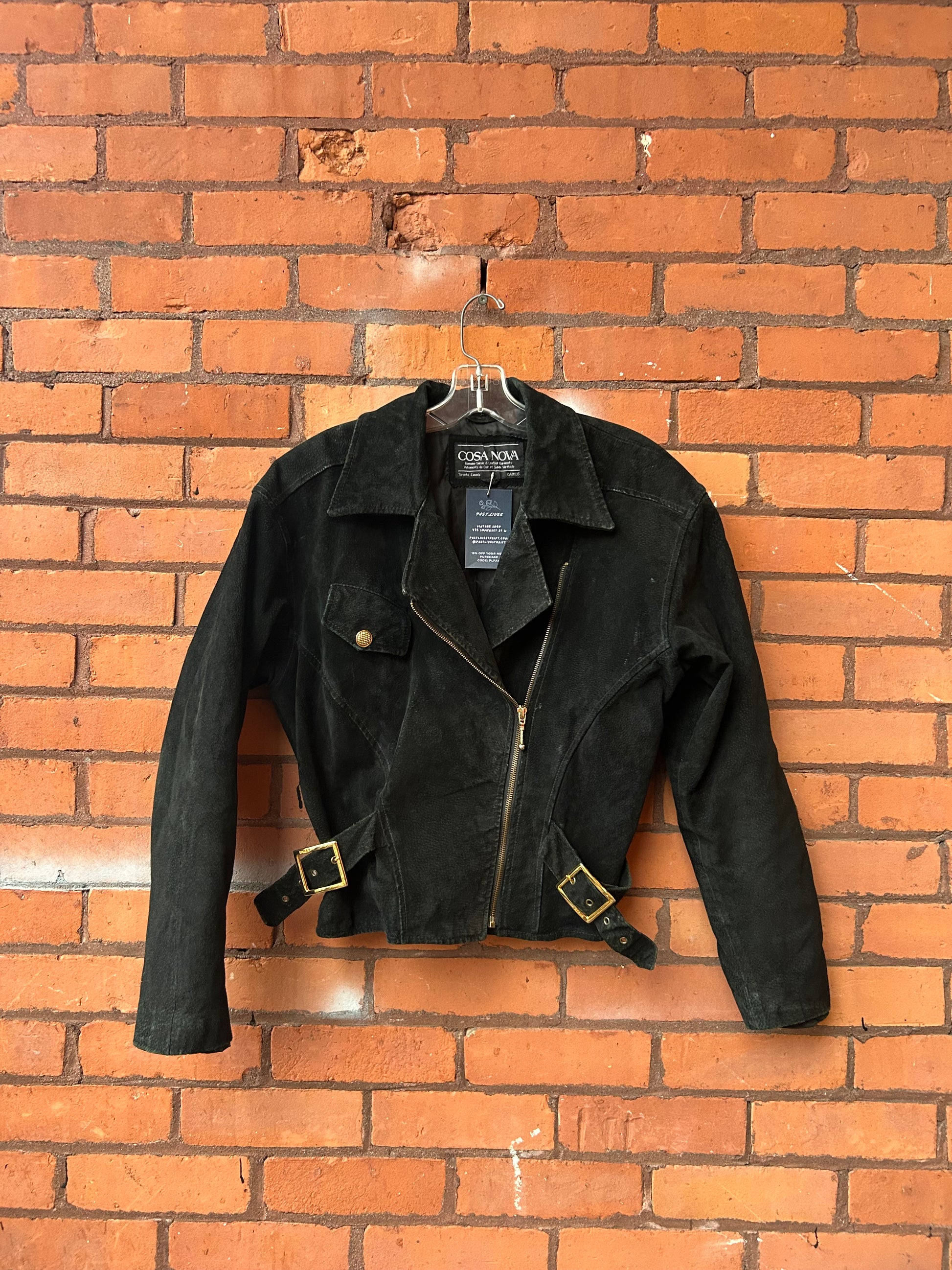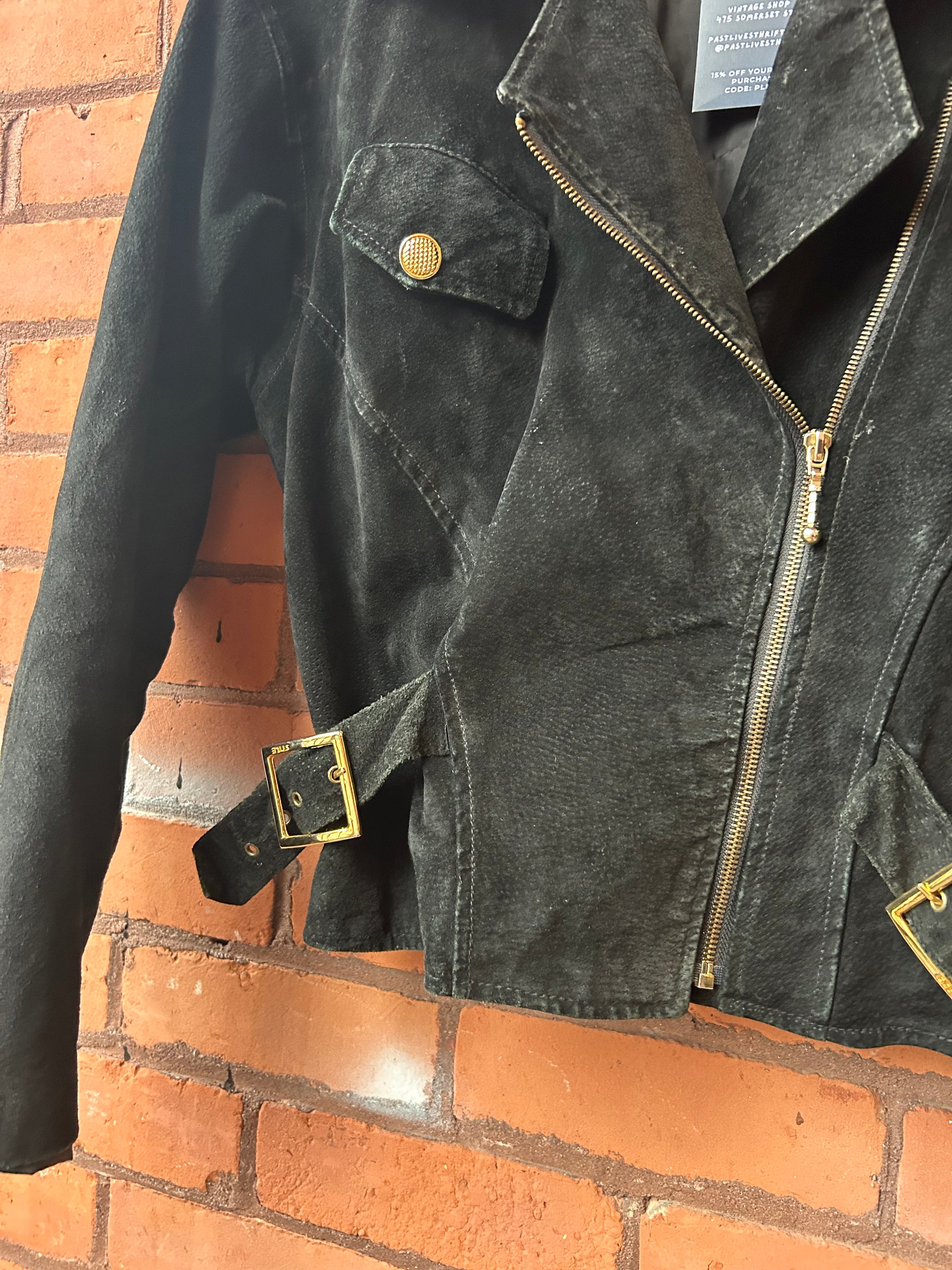 80’s Vintage Black Suede Buckle Moto Jacket / Size S
