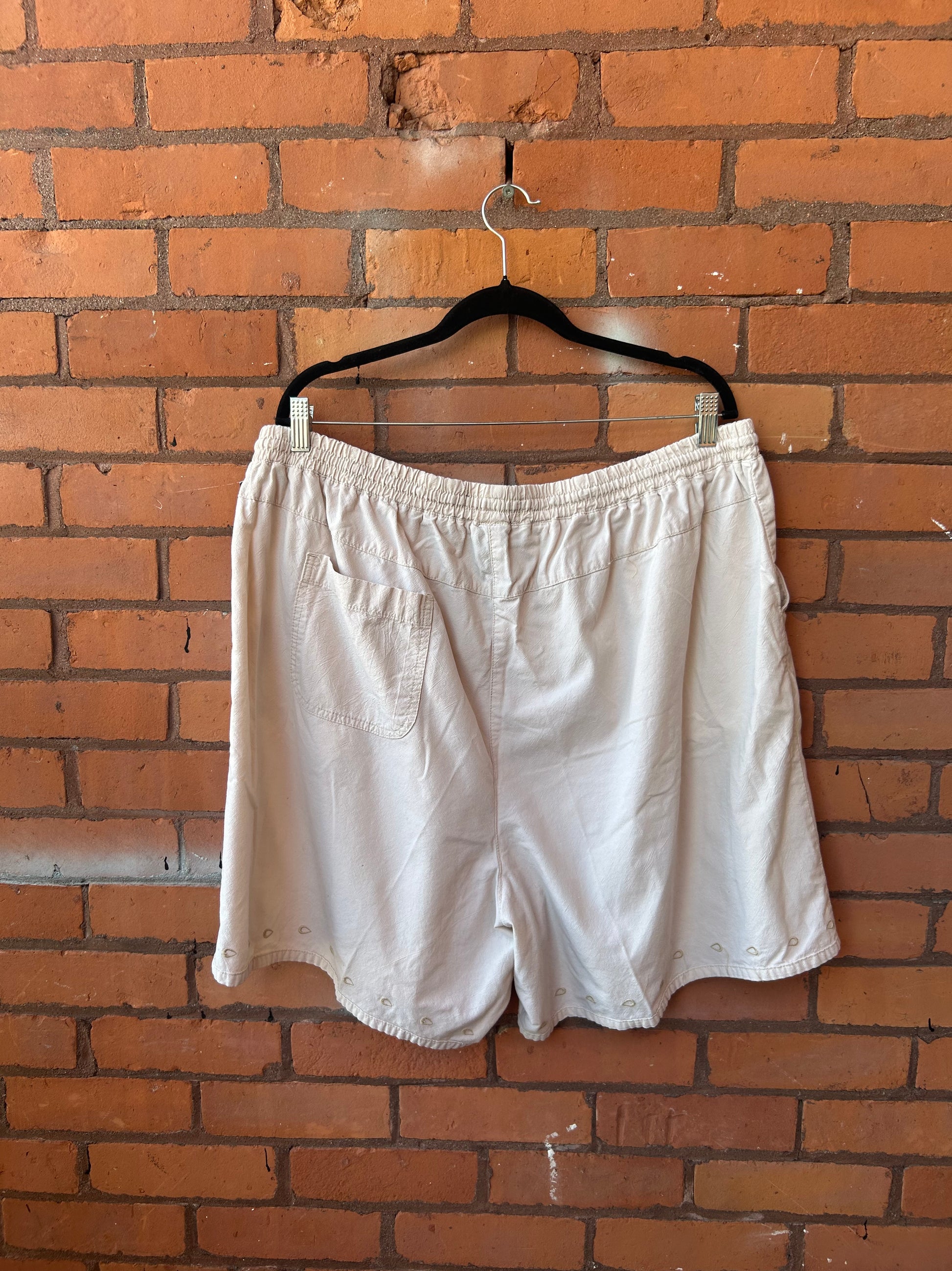 90’s Vintage Beige Cotton Embroidered Casual Shorts / 42-50 Waist