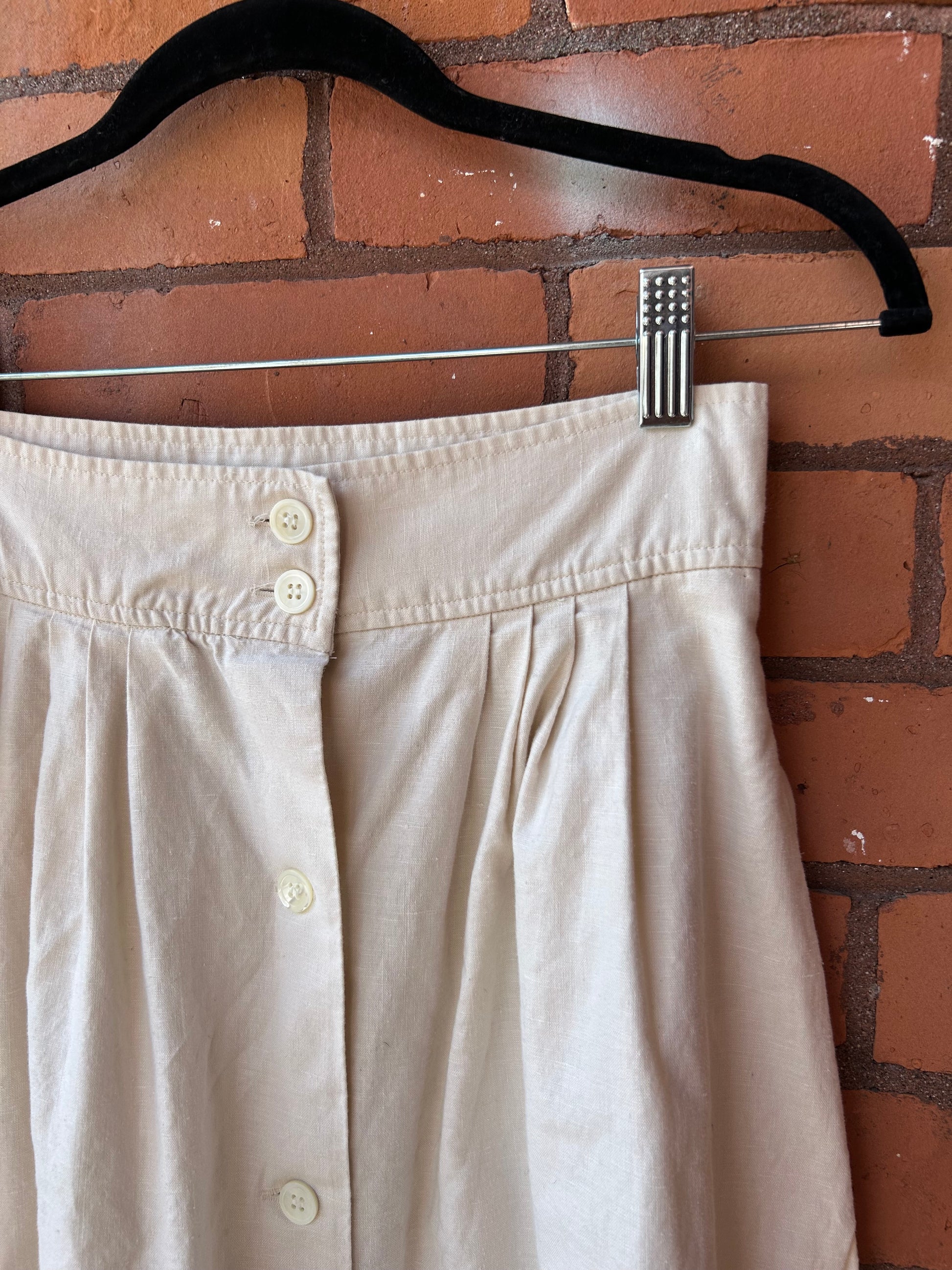 90’s Vintage Beige Linen & Cotton A-Line Button Down Skirt / 26 Waist