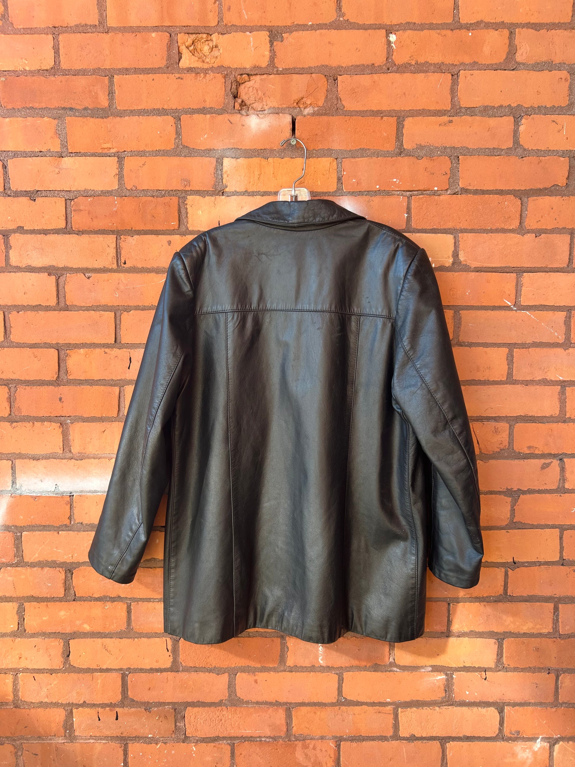 90’s Vintage Black Leather Classic Button Down Jacket / Size XXL