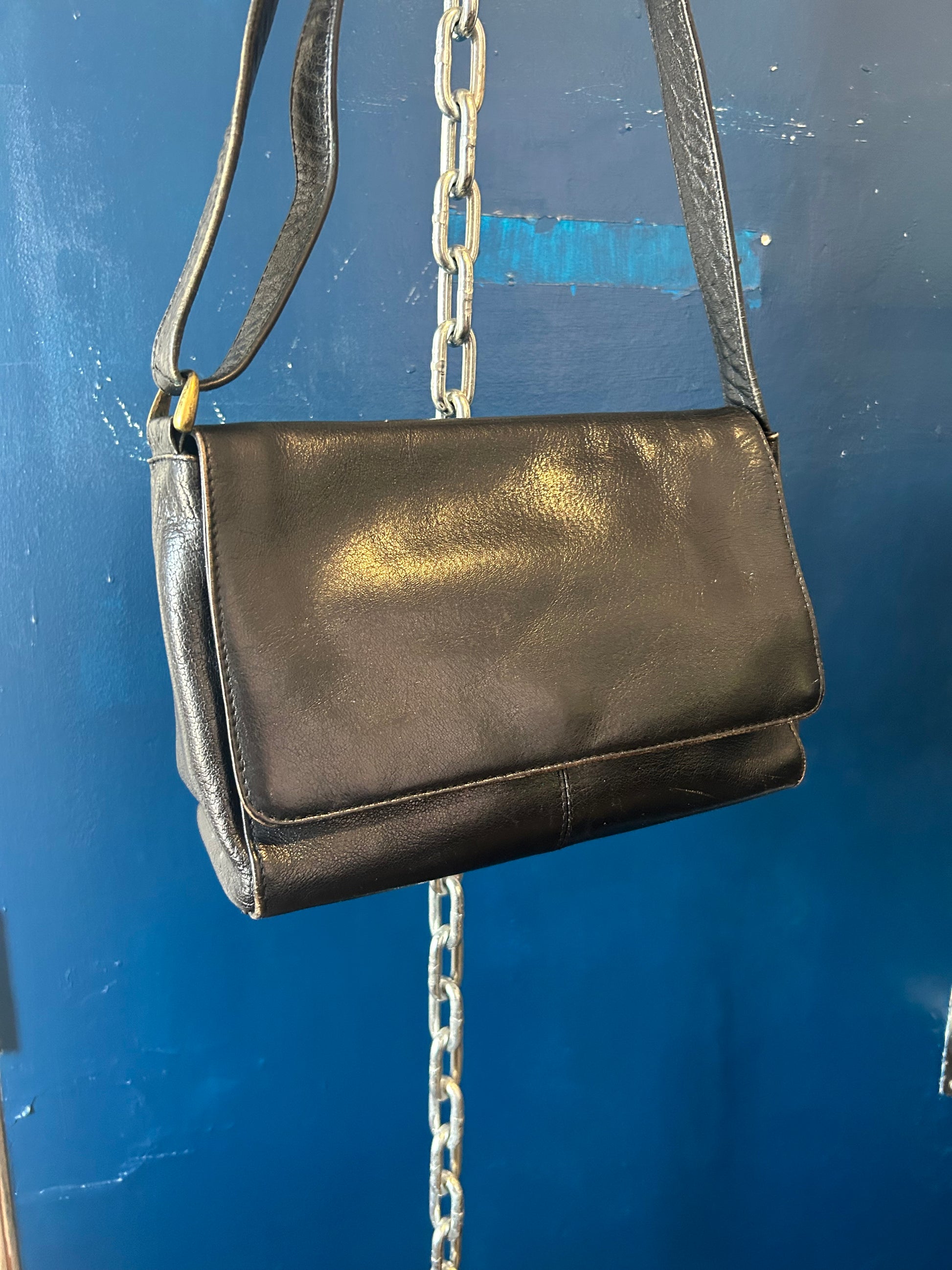 90’s Vintage Black Leather Crossbody / Shoulder Purse