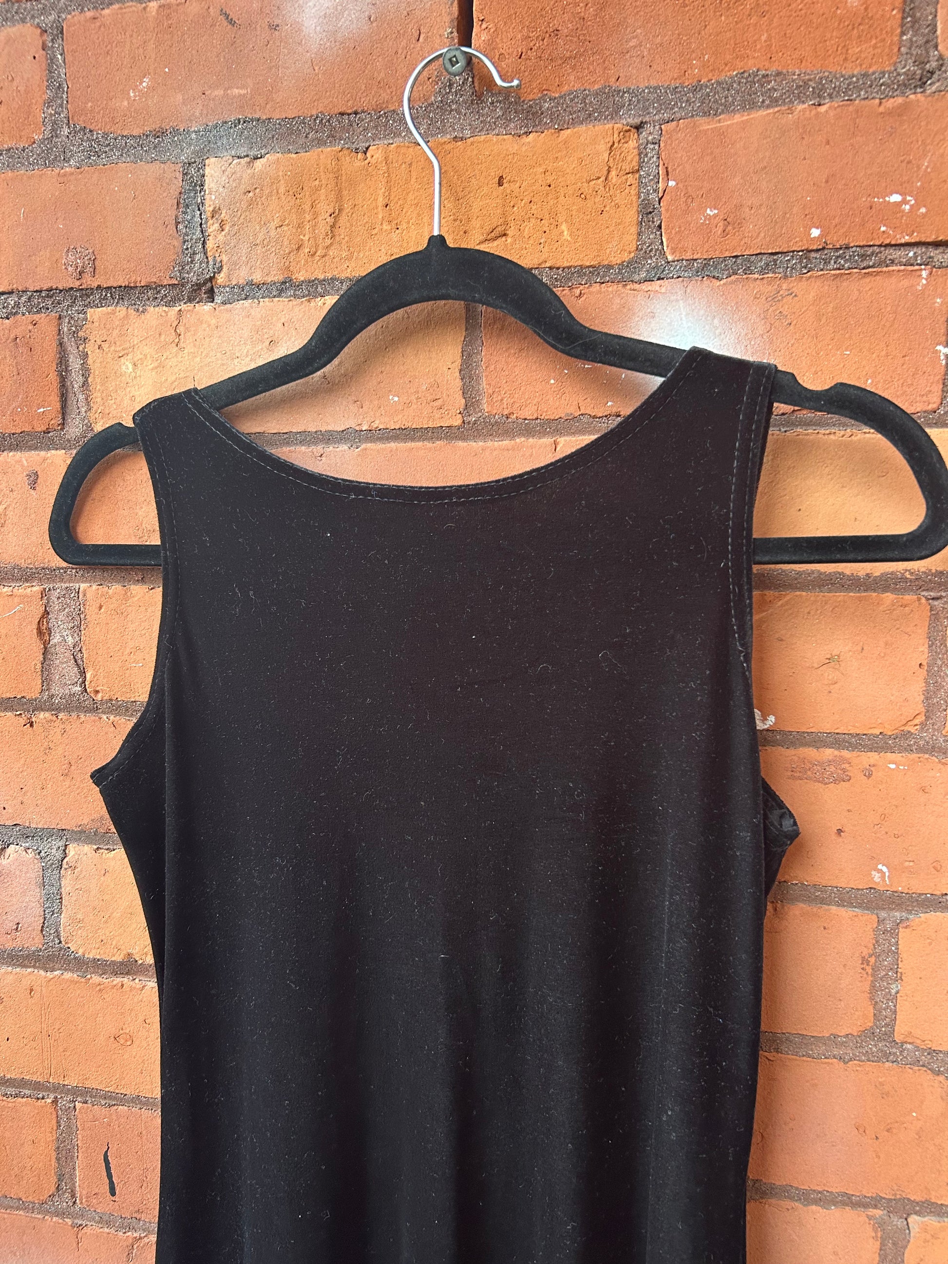 90’s Vintage Black Velvet High Neck Maxi Dress / Size 4-6