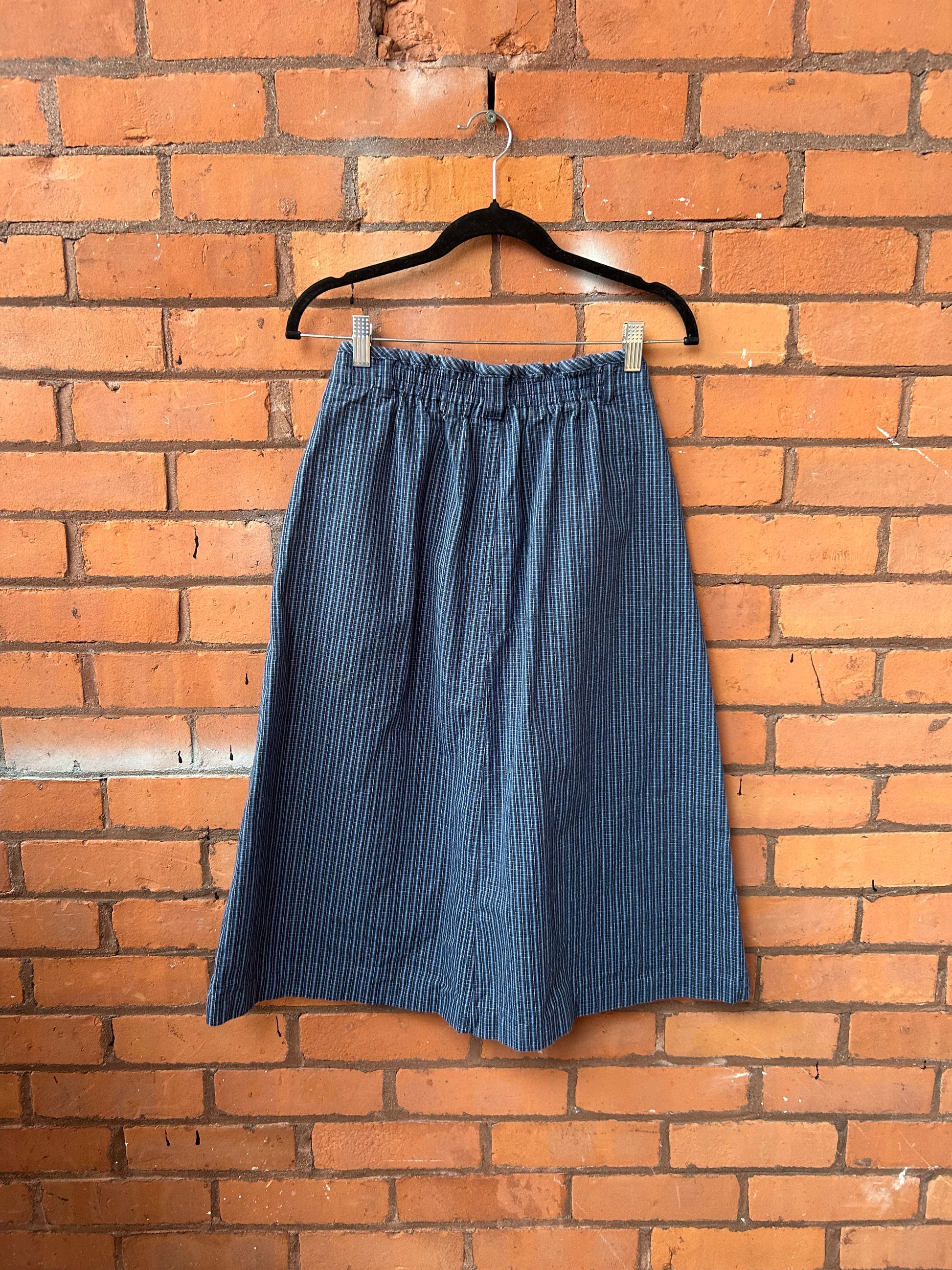 90’s Vintage Blue Plaid Button Down Midi Skirt / 24-28 Waist