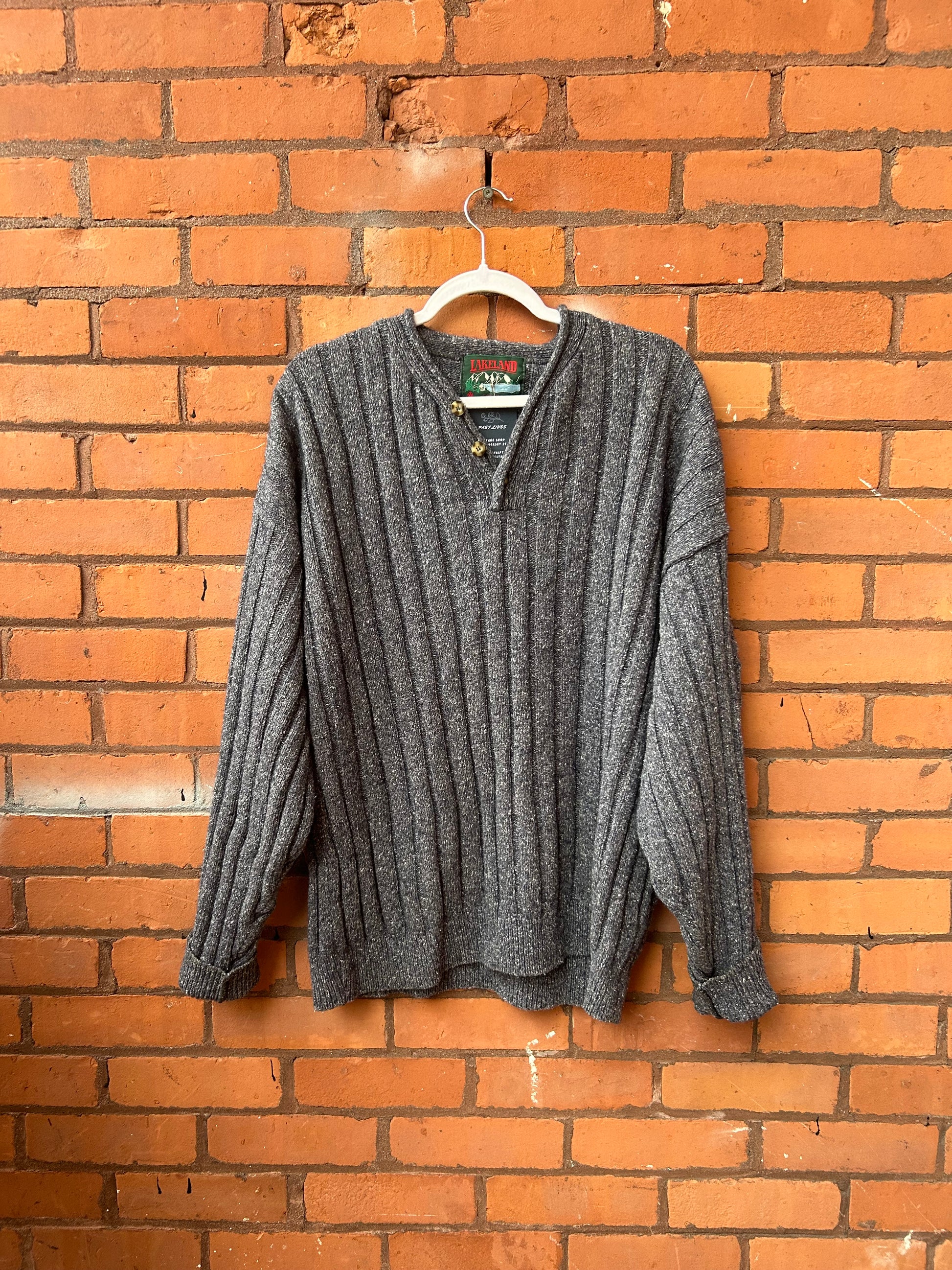 90’s Vintage Blue Ribbed Henley Sweater / Size XXL