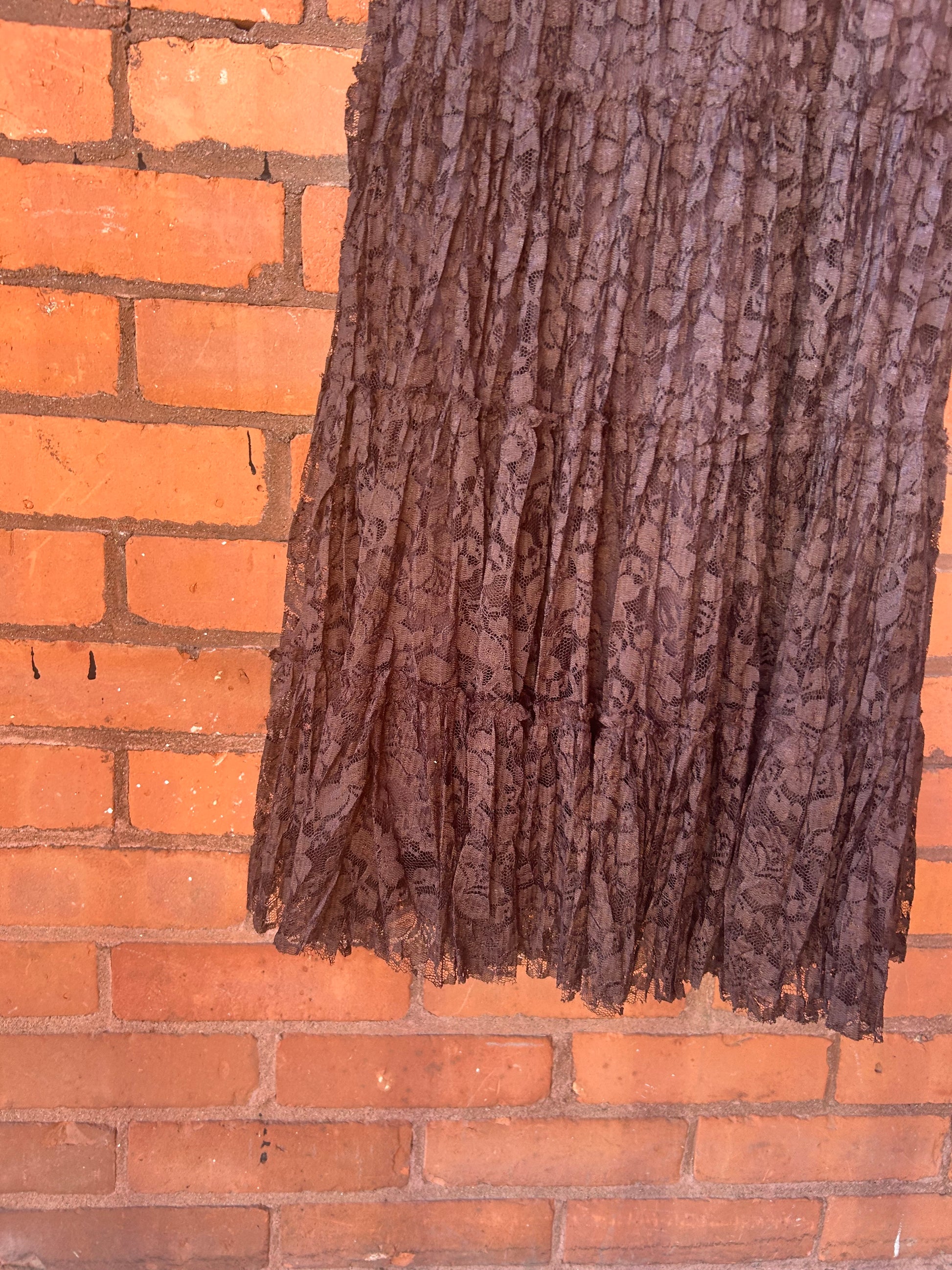 90’s Vintage Brown Lace Tiered Dress / Size 14