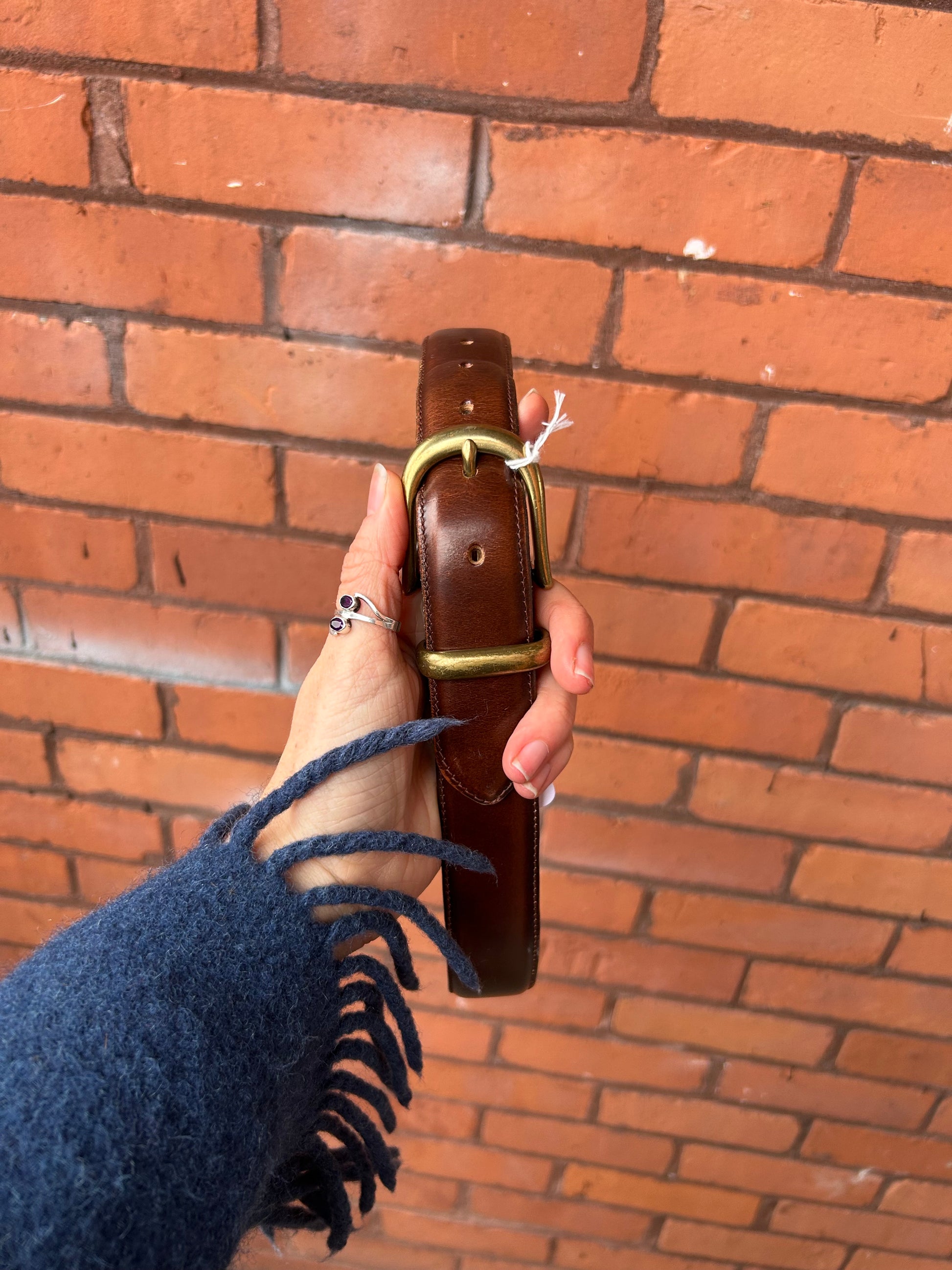 90’s Vintage Brown Leather Brass Buckle Belt / 24-28 Waist