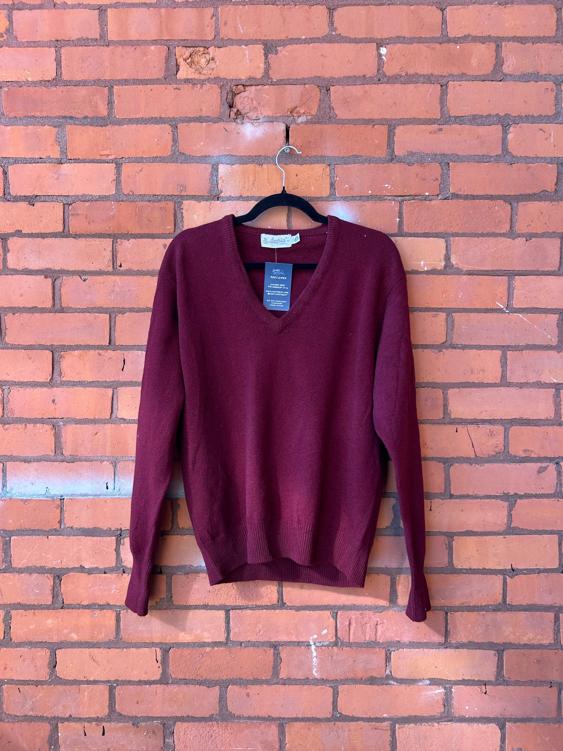 90’s Vintage Burgundy Lambswool V-neck Sweater / Size M