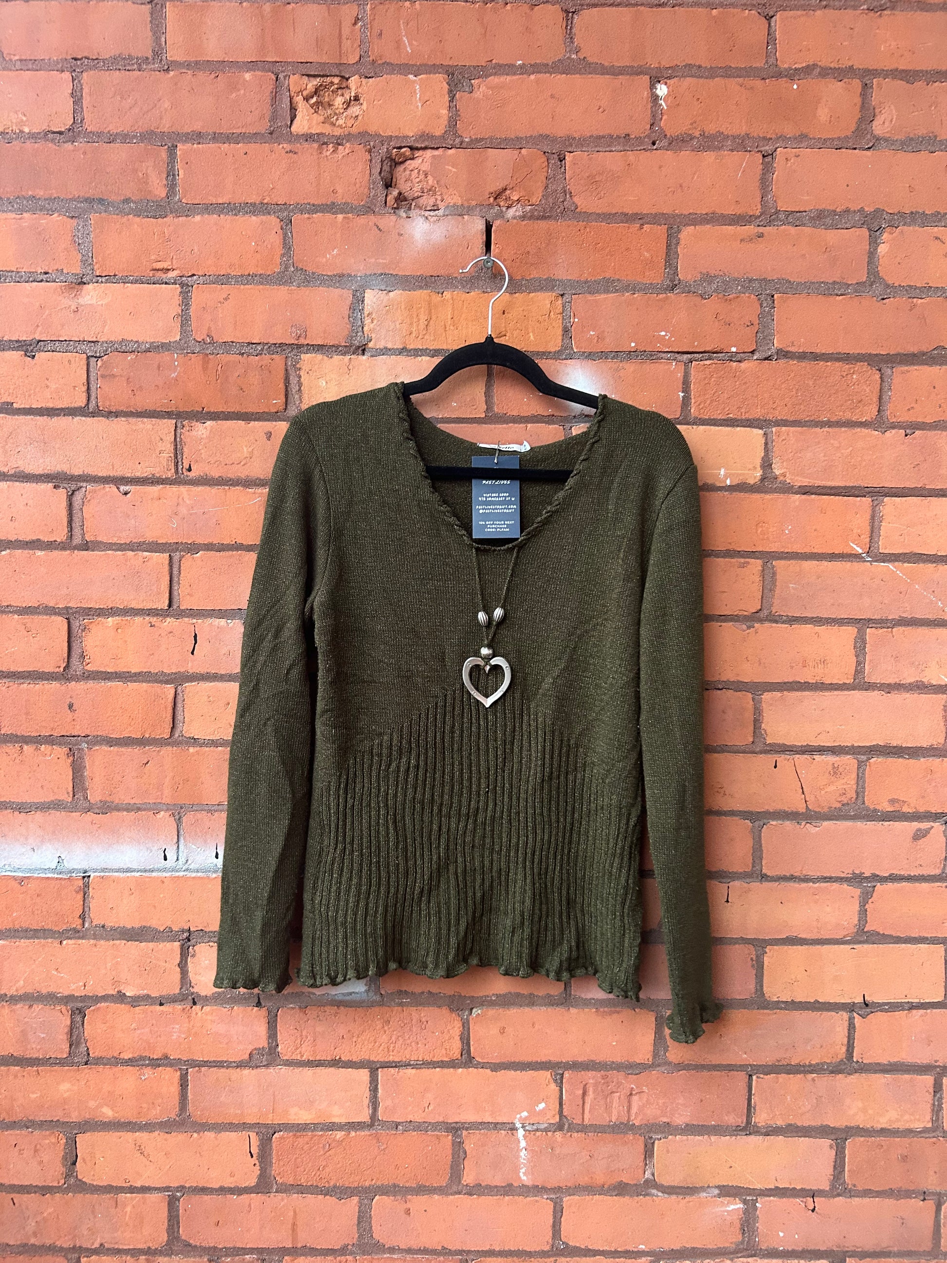 90’s Vintage Green Heart Pendant Fitted Sweater / Size M