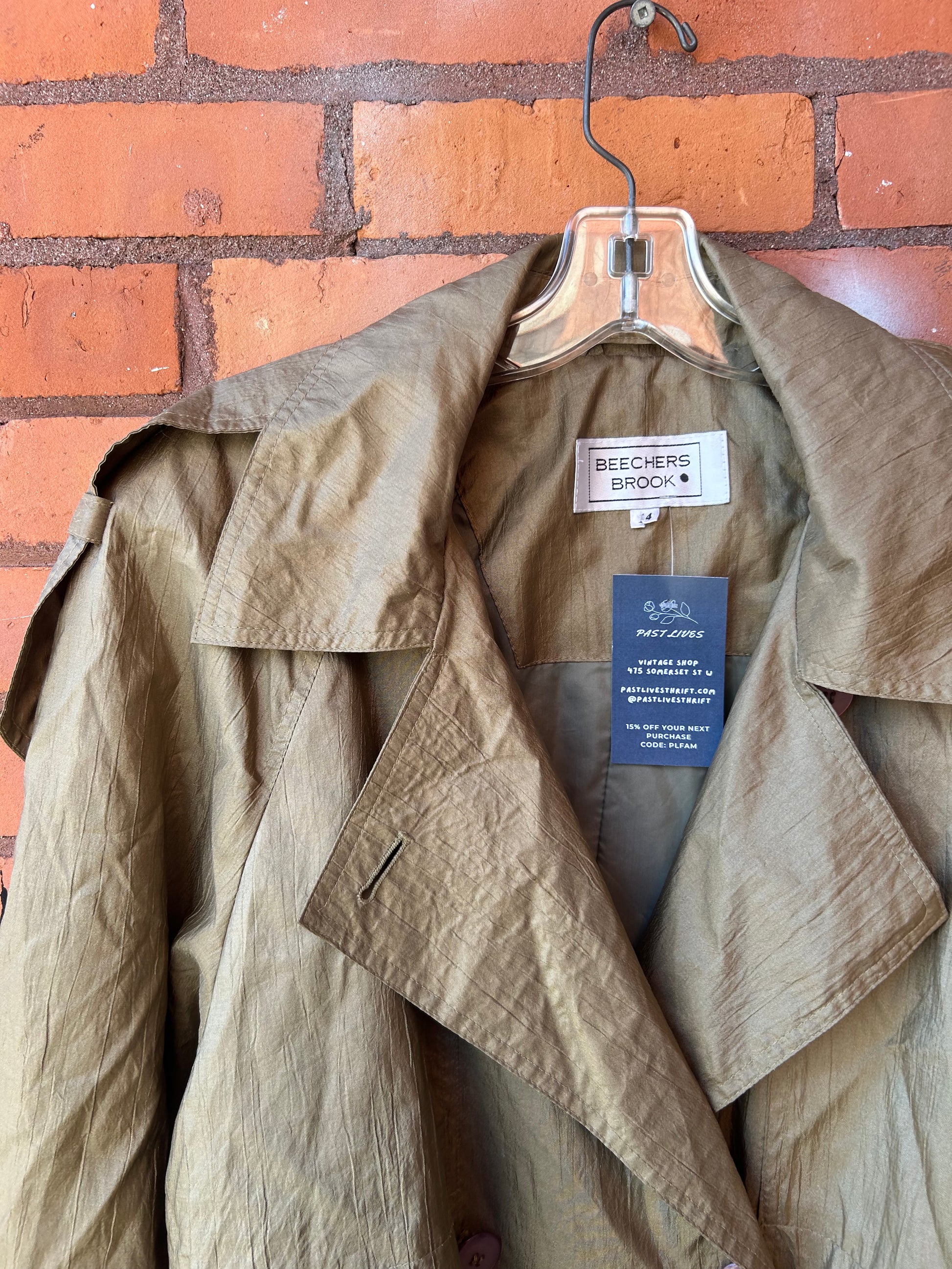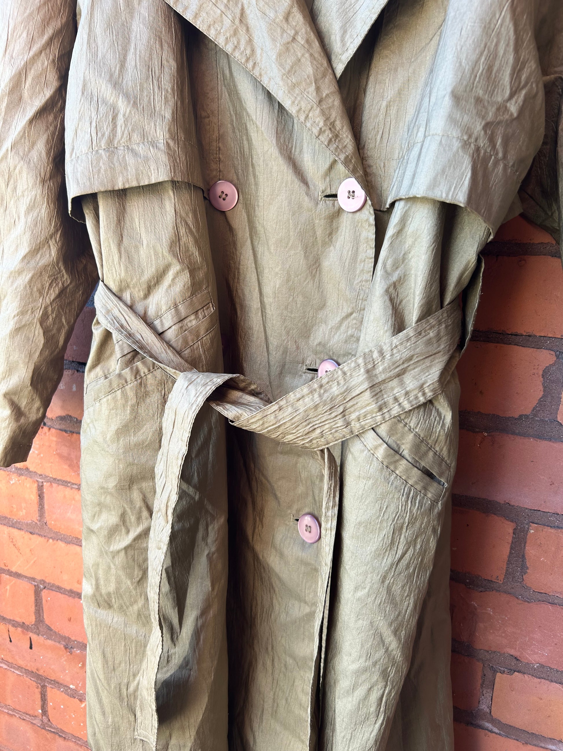 90’s Vintage Green Khaki Nylon Trench Coat / Size L