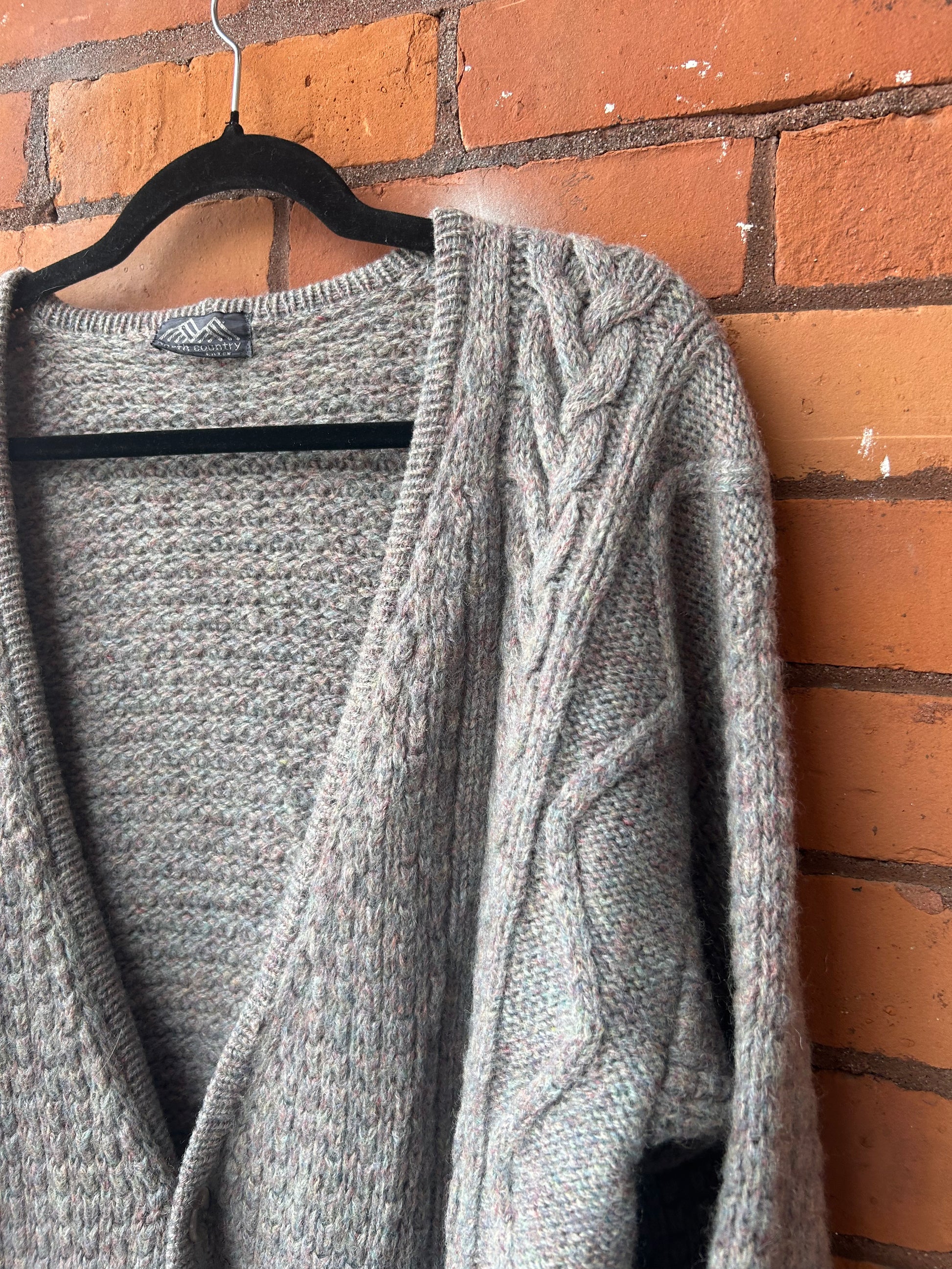 90’s Vintage Grey & Lilac Wool Cardigan / Size XL