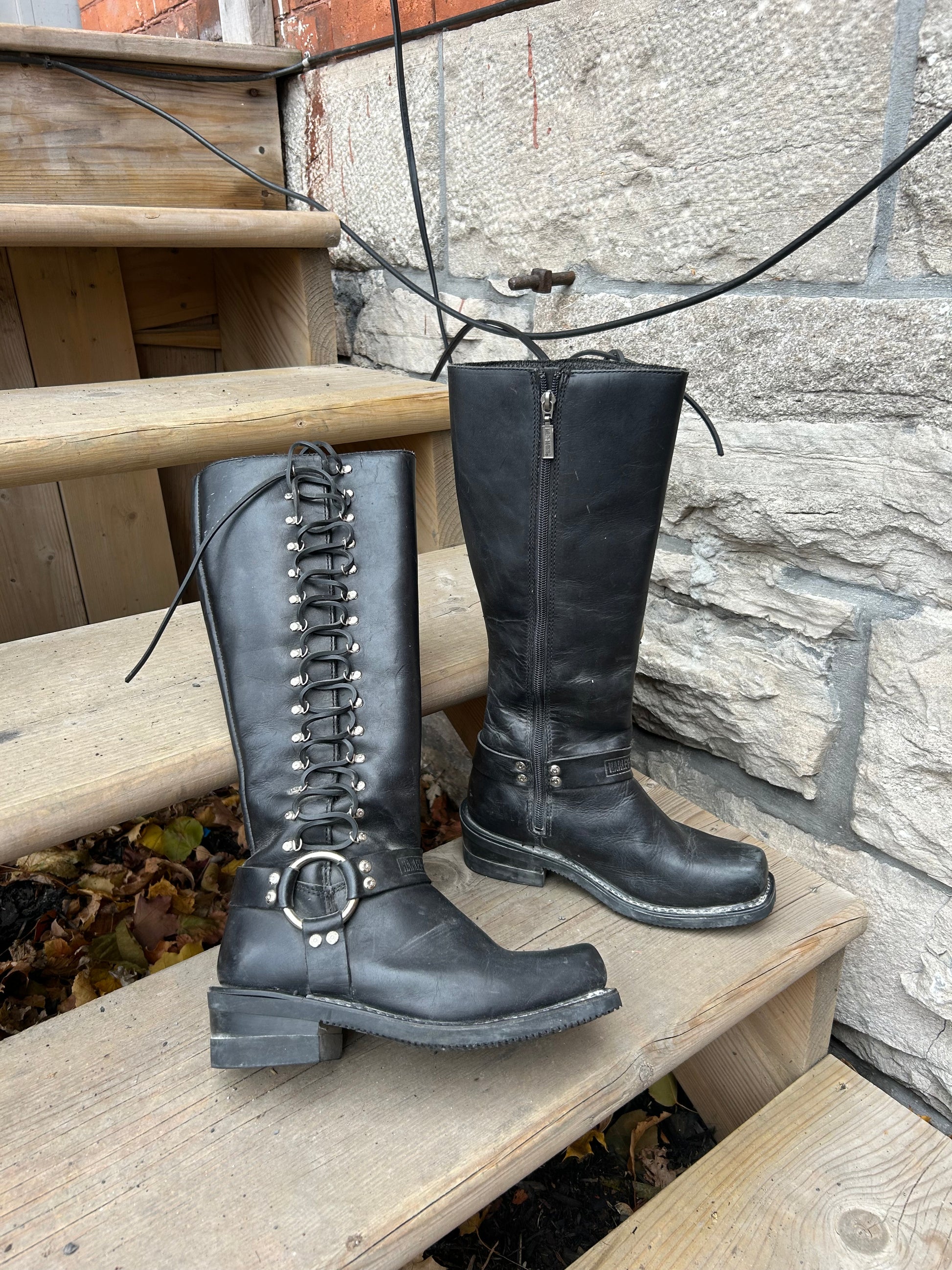 90’s Vintage Harley Davidson Leather Lace Up Moto Boots / Size 7