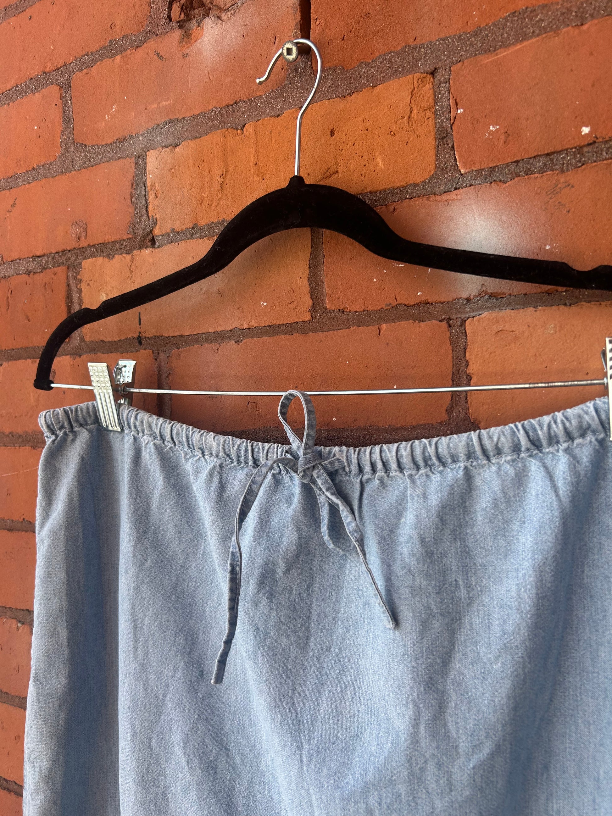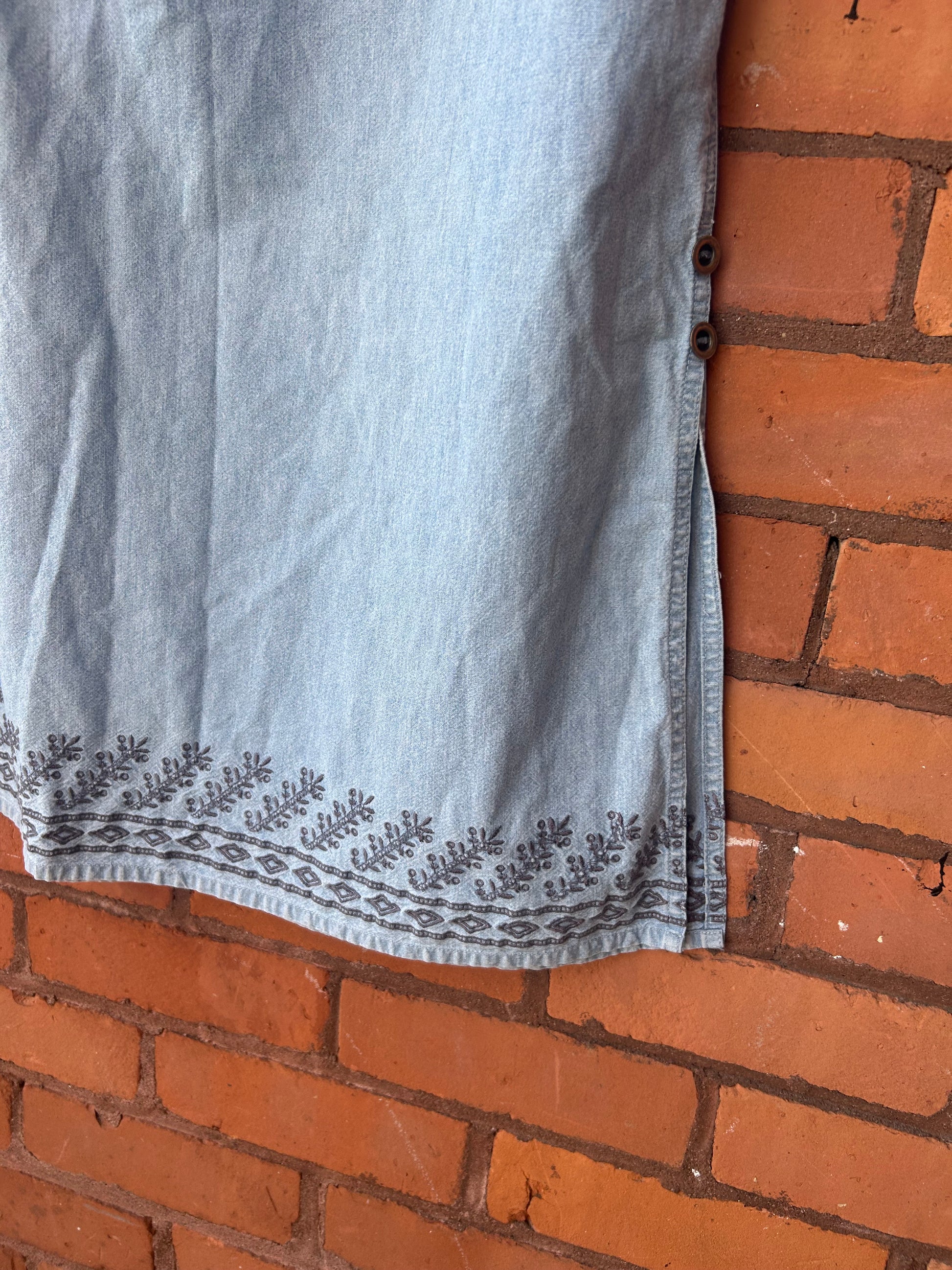 90’s Vintage Light Denim Embroidered Maxi Skirt / 32-36 Waist