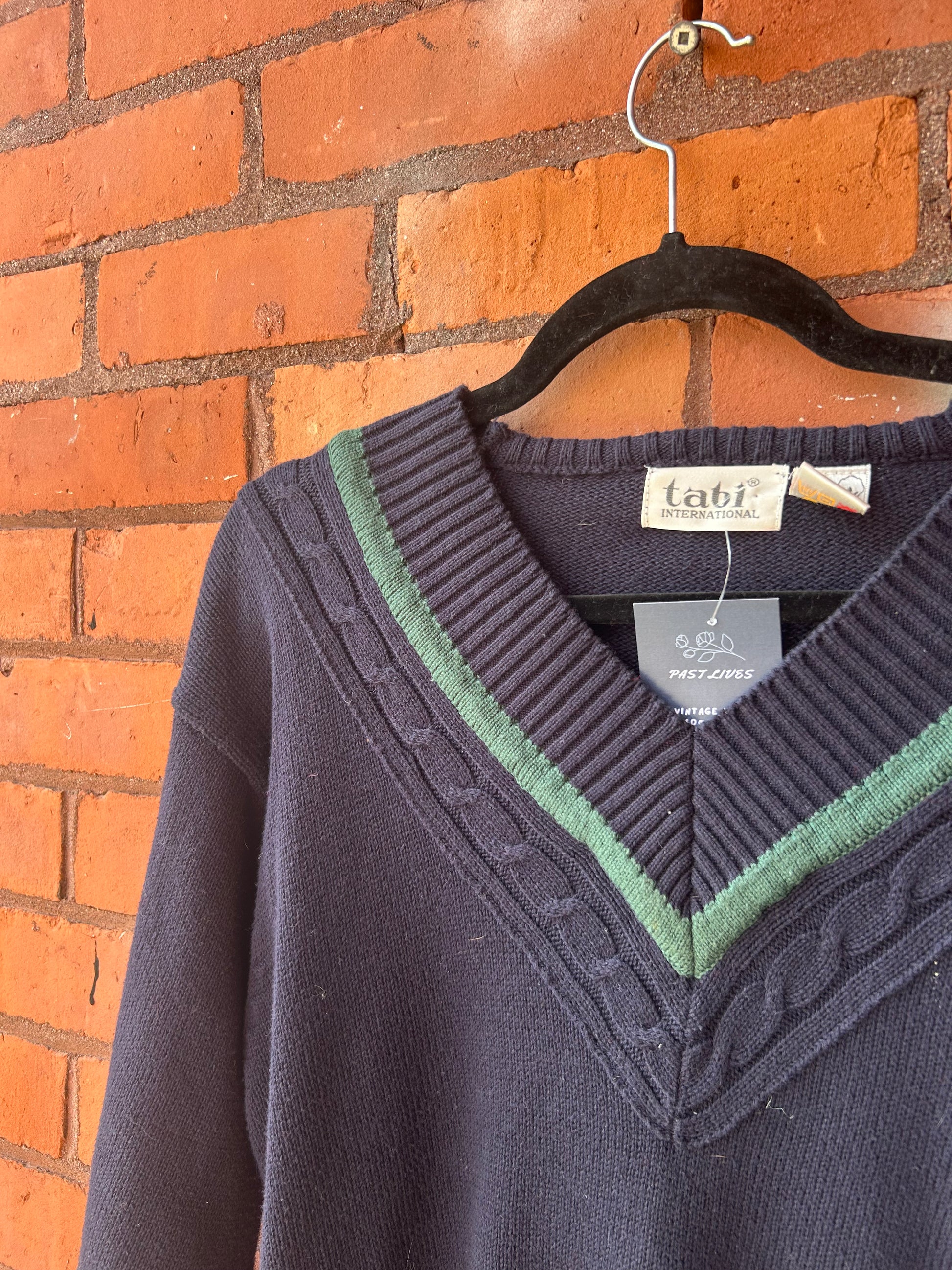 90’s Vintage Navy & Green Cotton Tennis Sweater / Size S