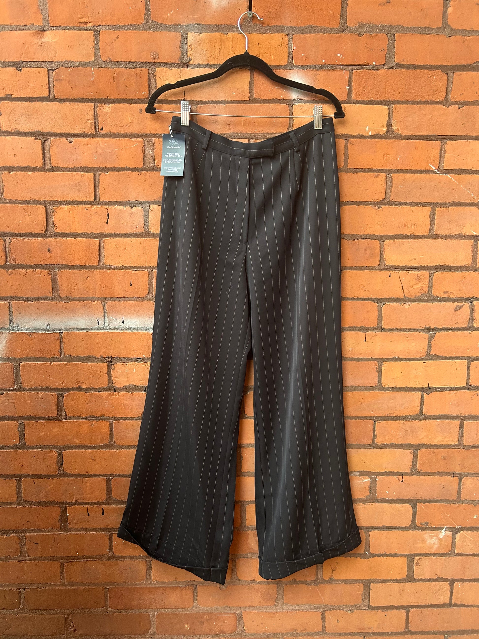 90’s Vintage Navy Pinstripe Wide Leg Trousers / 30 waist