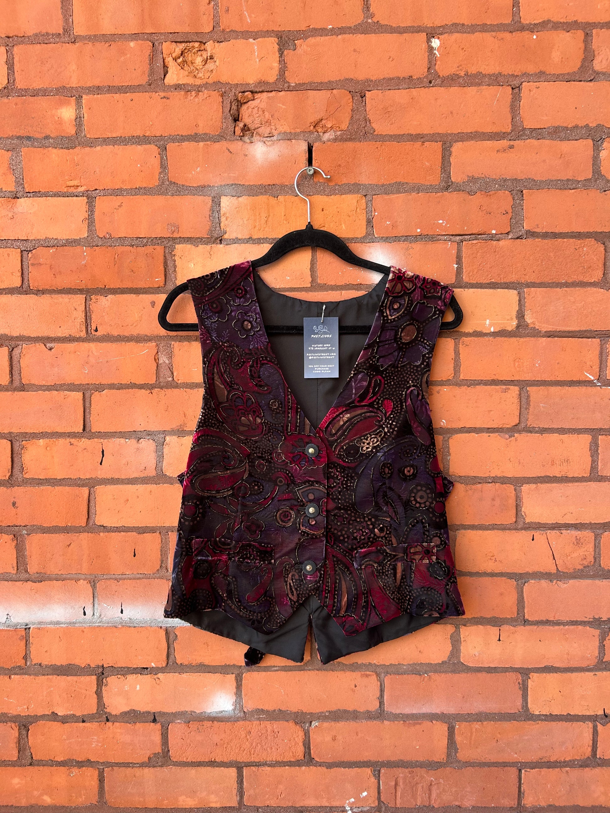 90’s Vintage Paisley Velvet Cropped Vest / Size L