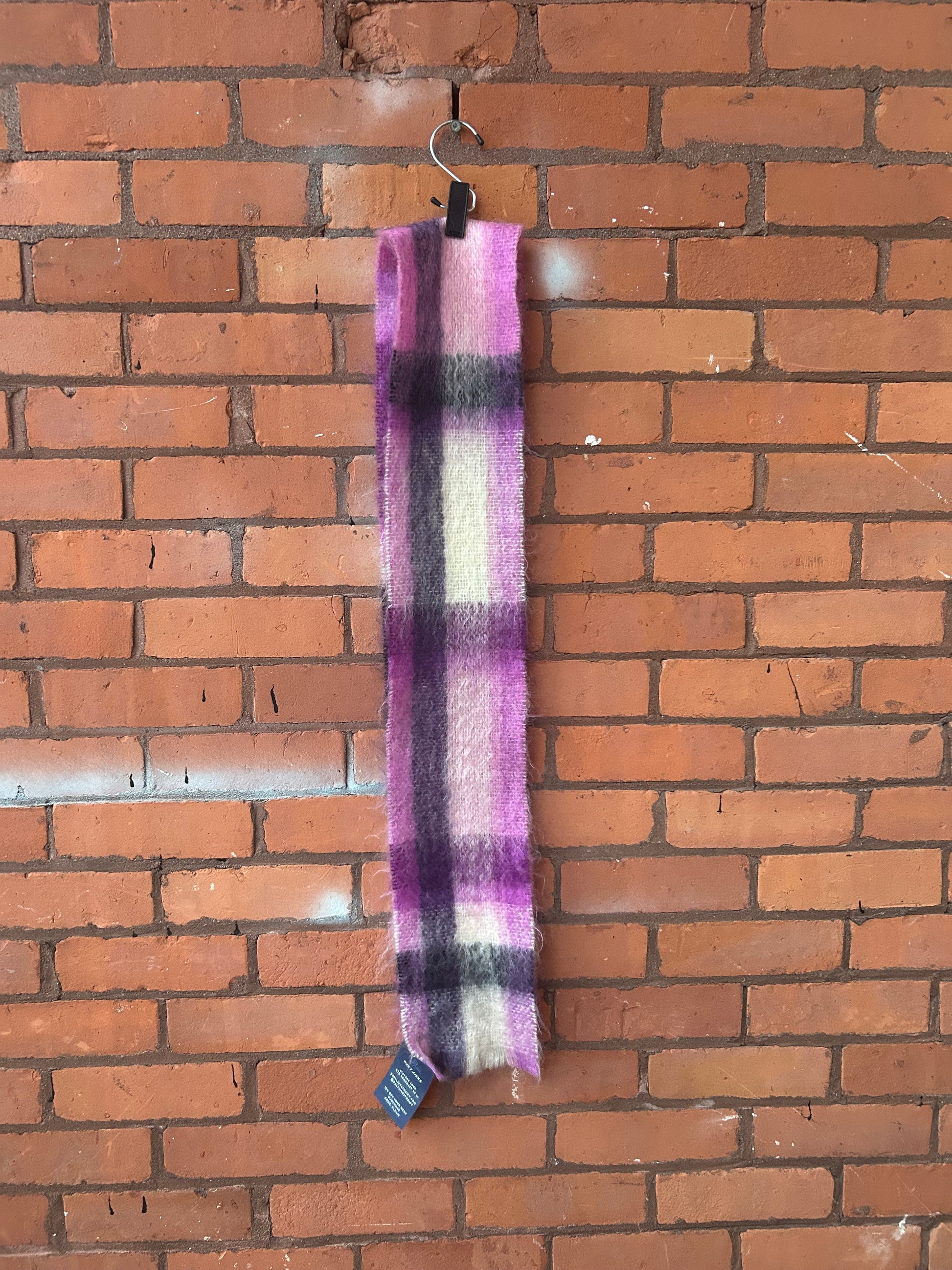 90’s Vintage Purple Plaid Mohair Wool Scarf