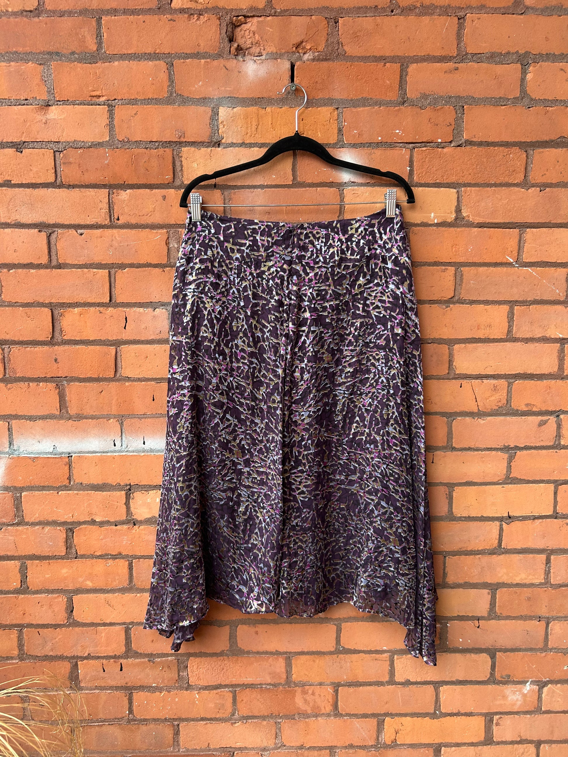 90’s Vintage Purple Velvet Burnout Silk Midi Skirt / 32 Waist