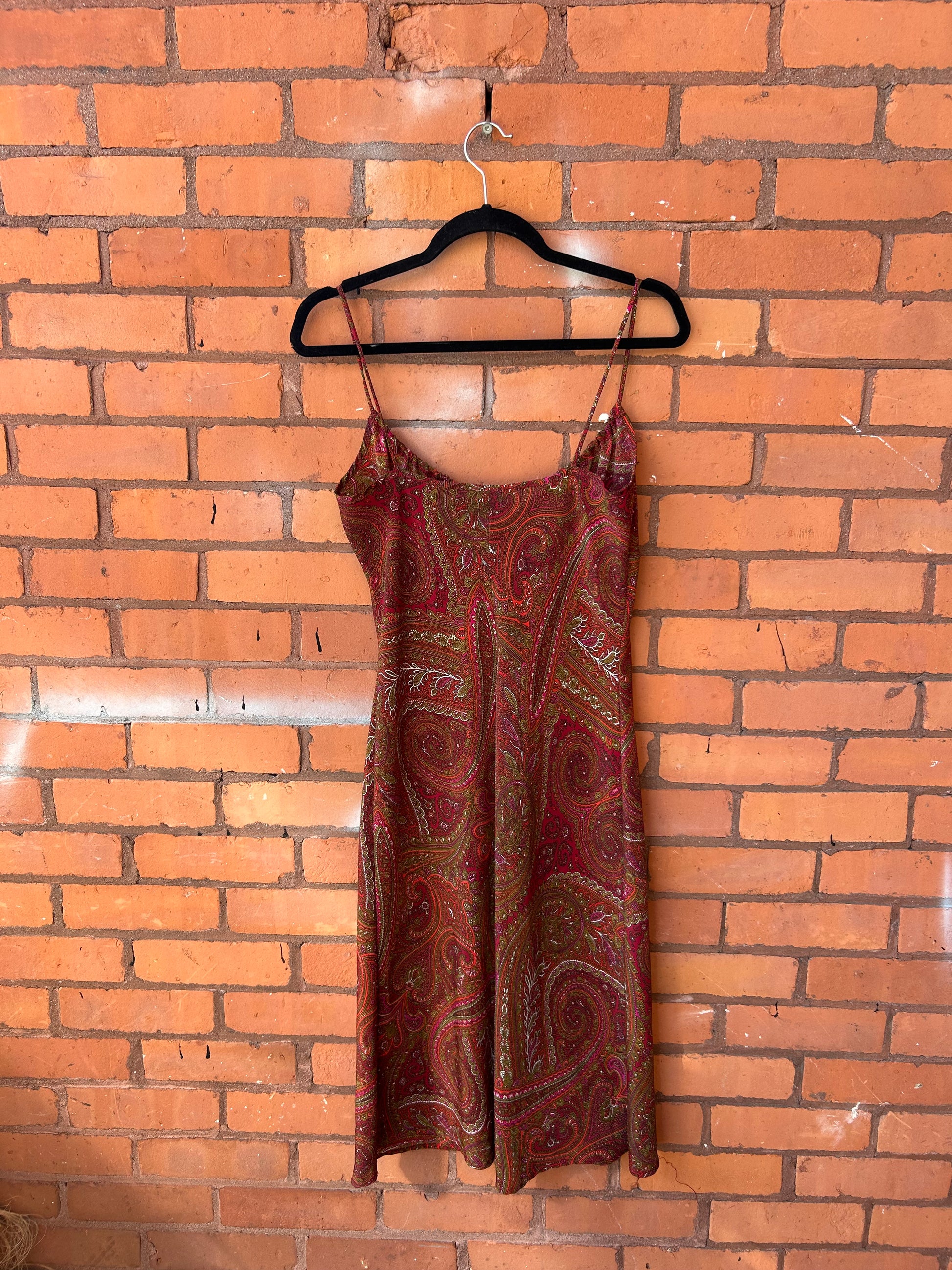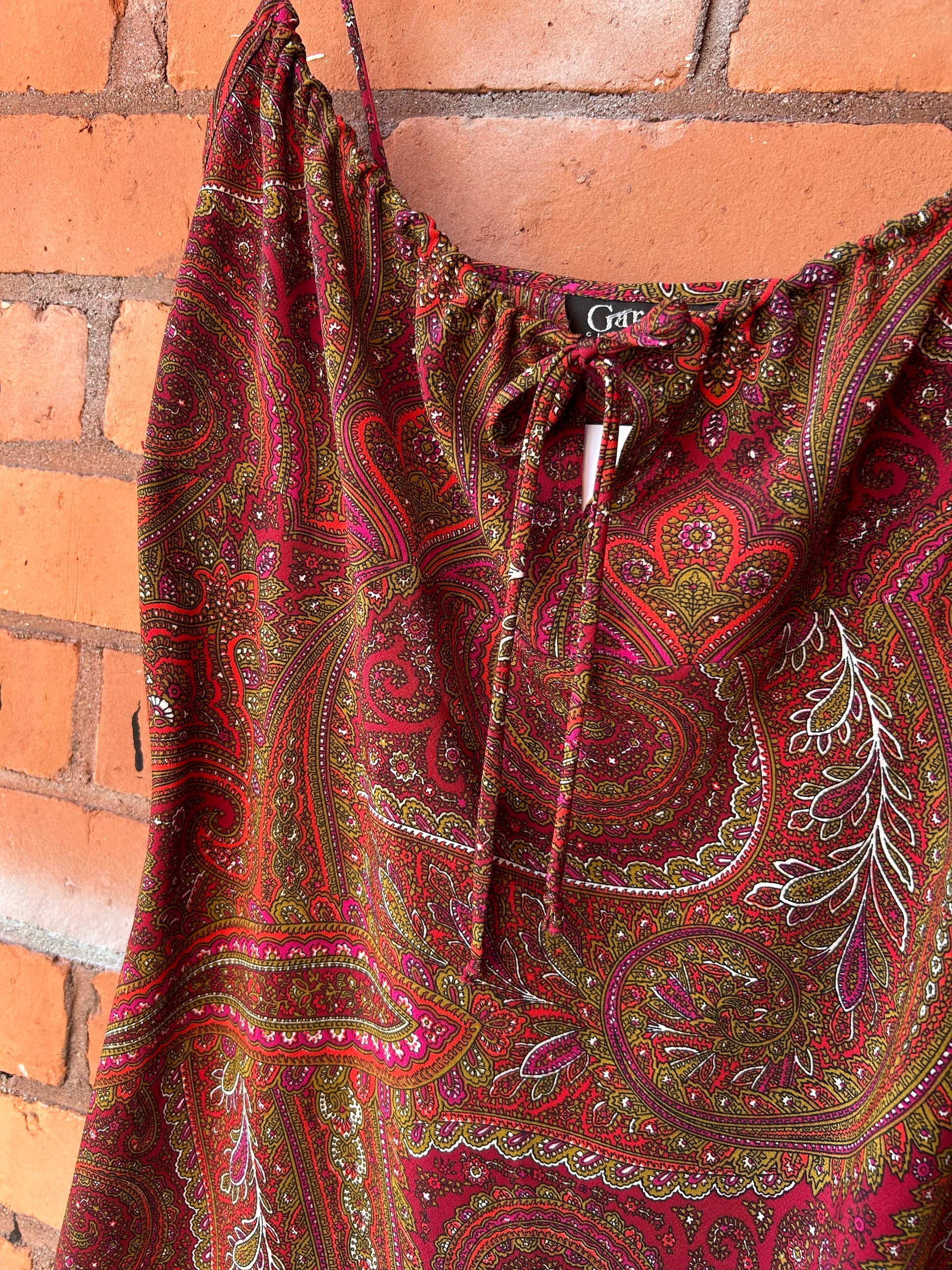 90’s Vintage Red Paisley Tie Chest Midi Dress / Size M
