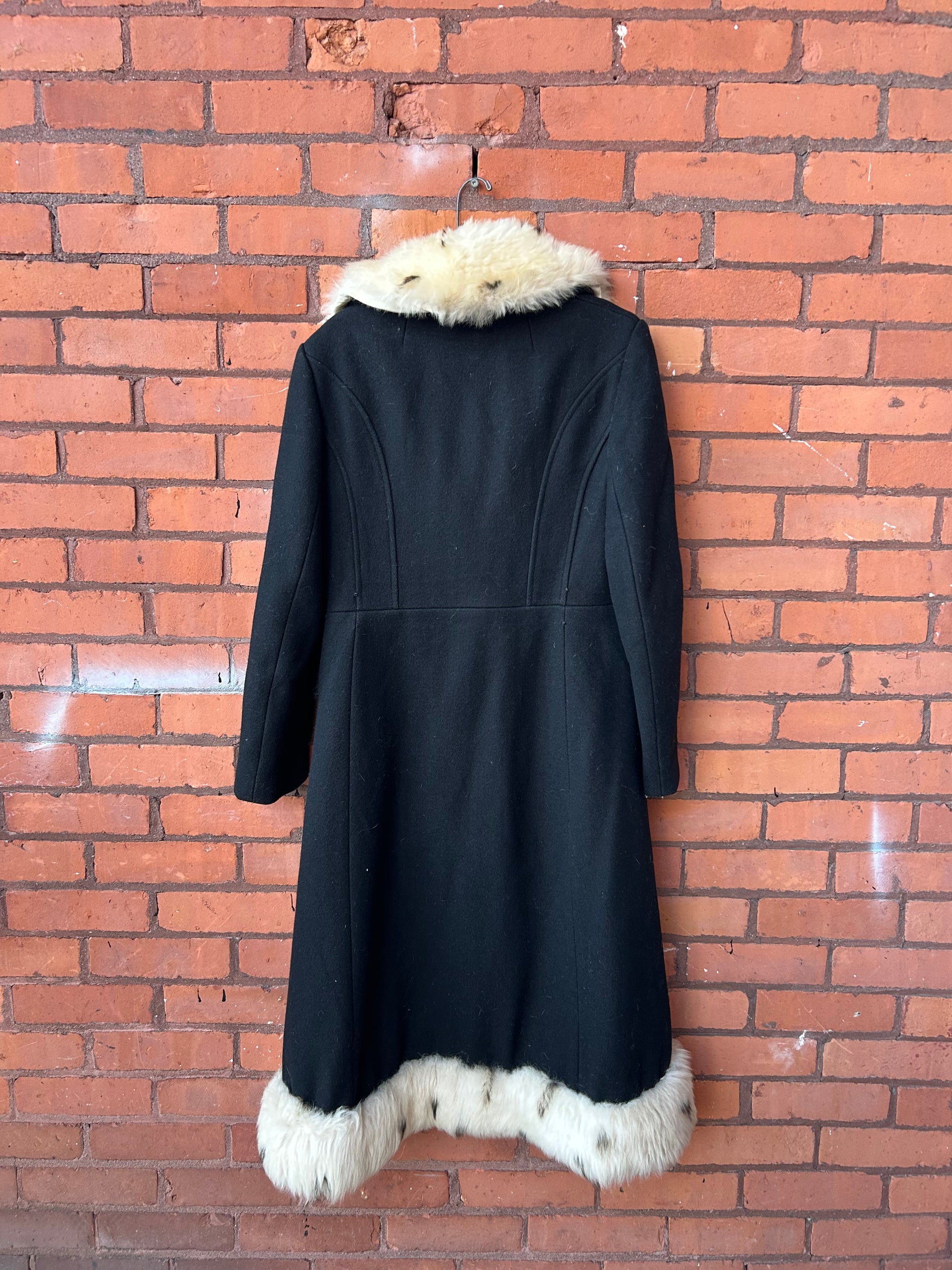 90’s Vintage Wool & Faux Fur Trim Over Coat / Size S