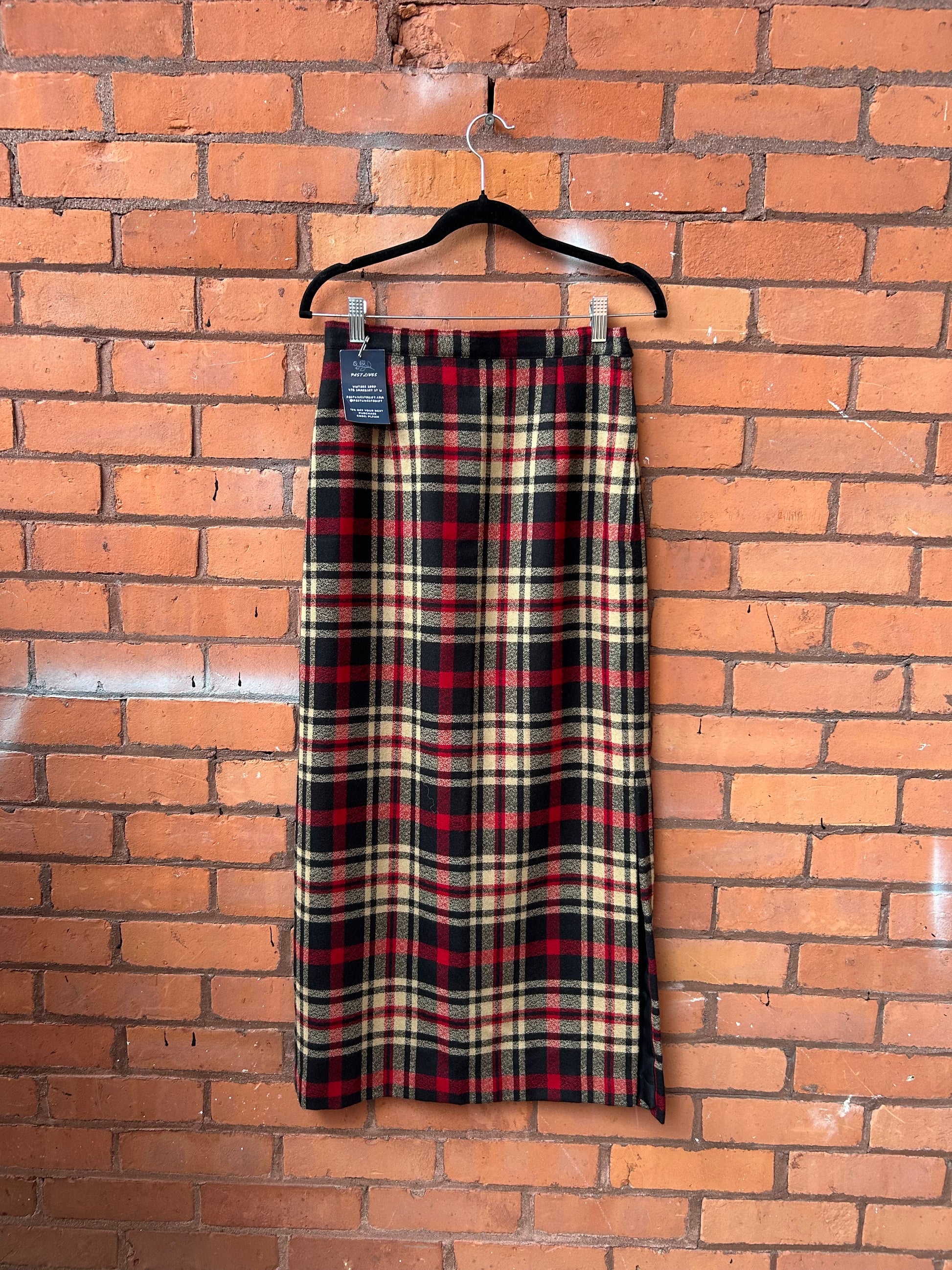 90’s Vintage Wool Red Tartan Maxi Skirt / 28 Waist