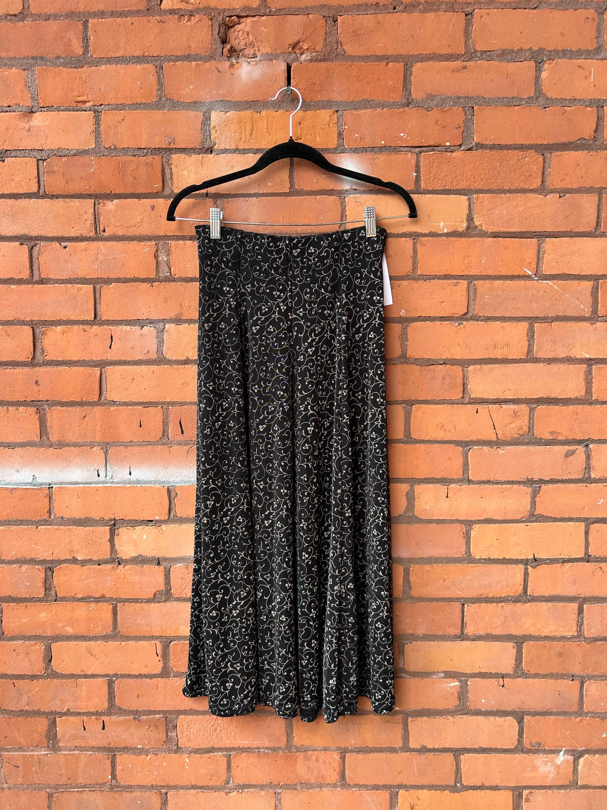 90's Vintage Black & Lavender Vines Slinky Maxi Skirt / 26 - 30 Waist